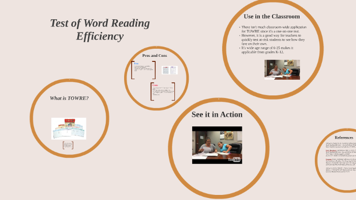 Individual The Test of Word Reading Efficiency TOWRE was originally published in 1999 to meet the. 100 of 100. Over 700 children in the norming sample.