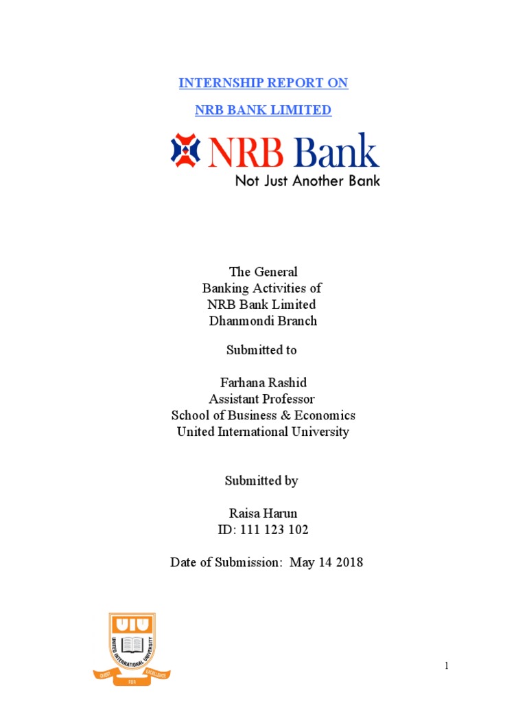 Final Copy Nrb Bank Internship Report 2018 Pdf Cheque Deposit Account